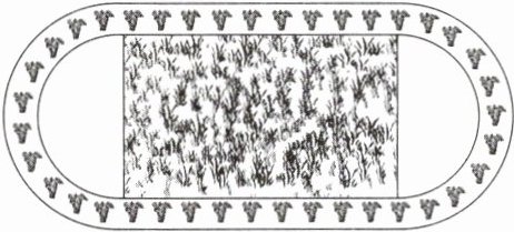 14. 某公司设计了如下的绿化景观地带,这块绿化景观地带内圈周长为 $ 400 \mathrm{m} $,两条平行线段的两端用半圆弧相连接,两条平行线段的长为 $ 100 \mathrm{m} $,这样设计有什么好处?你能说出这样设计的理由吗?