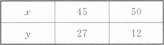 得$\begin{cases}45a + b = 27, \\50a + b = 12,\end{cases}$解得$\begin{cases}a = -3, \\b = 162,\end{cases}\therefore y = f(x) = -3x + 162$.