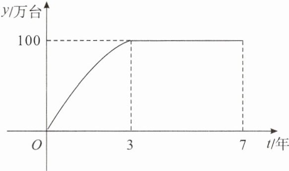 7. 某电子公司7年来生产智能手机总产量 $y$ (单位:万台,即前 $t$ 年年产量的和) 与时间 $t$ (单位:年) 的函数关系式如图所示,下列说法中,正确的是 (