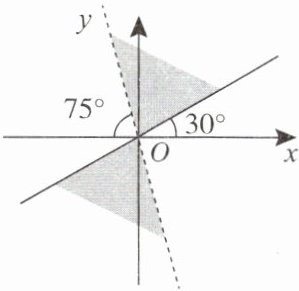 (2)终边在30°角的终边所在直线上的角的集合为$S_1=\{\alpha|\alpha=30°+k\cdot180°,k\in\mathbf{Z}\},$终边在180°-75°=105°角的终边所在直线上的角的集合为$S_2=\{\alpha|\alpha=105°+k\cdot180°,k\in\mathbf{Z}\},$因此终边在题图中的阴影区域内的角$\alpha$的取值范围是$30°+k\cdot180°\leqslant\alpha<105°+k\cdot180°,k\in\mathbf{Z},\therefore$角$\frac{\alpha}{2}$的取值范围是$15°+k\cdot90°\leqslant\frac{\alpha}{2}<52.5°+k\cdot90°,k\in\mathbf{Z}.$