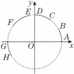 16. 在平面直角坐标系中,$\overgroup{AB}$,$\overgroup{CD}$,$\overgroup{EF}$,$\overgroup{GH}$是单位圆上的四段弧(如图所示),点$P$在其中一段上,角$\alpha$以$Ox$为始边,$OP$为终边. 若$\tan \alpha<\cos \alpha<\sin \alpha$,则$P$所在的圆弧是(
