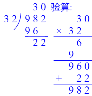 ☆$982÷32$ $510÷85$