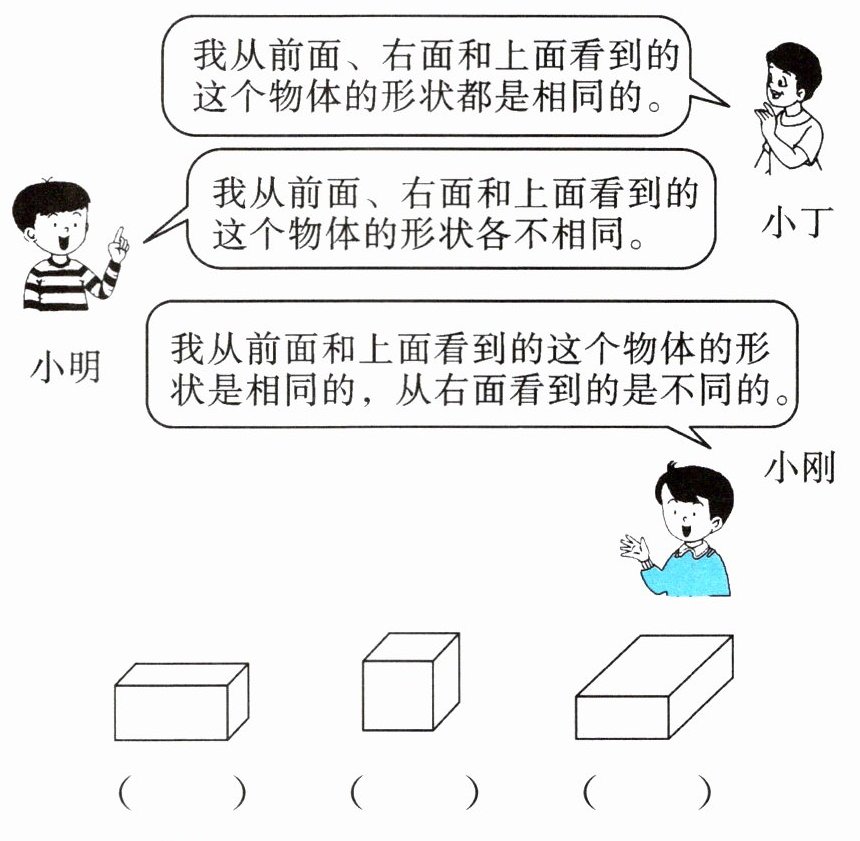 3. 他们看到的分别是哪个物体?把名字写在下面的括号里。
