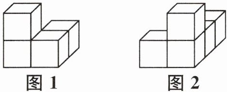 用两个同样大小的正方体搭成下面的物体。从前面、右面和上面看这个物体,各看到什么形状的图形?