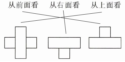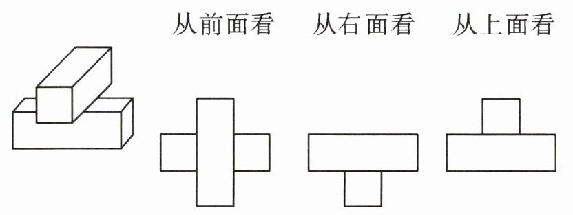 这是将两个同样大小的正方体上下连接摆放的示意图。观察时要按示意图摆放好两个正方体,分别从前面、右面和上面去观察。