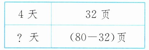 一本书一共有80页,4天看了32页,照这样计算,剩下的还要几天看完?