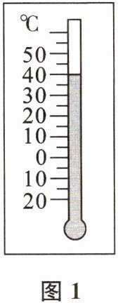 (1) 观察图1的温度计,显示零上40℃,零上40℃记作(