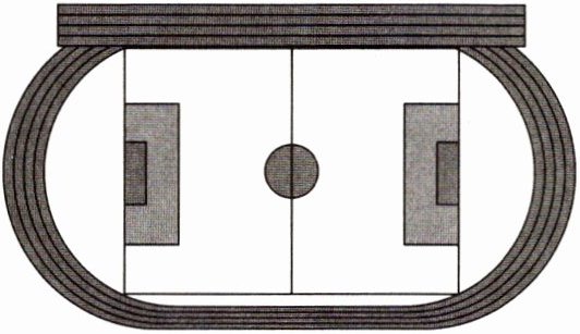 5. 下面是学校大门侧一块绿地平面图。如果1毫米表示实际1米,请你量一量,算一算,这块绿地的面积是多少平方米?