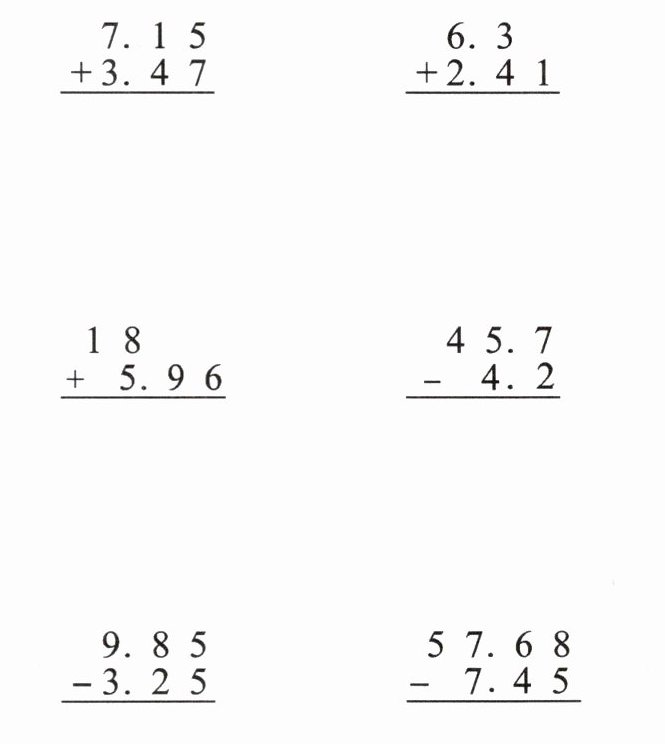 $9.6 - 1.5 =$ $7.8 - 4.6 =$