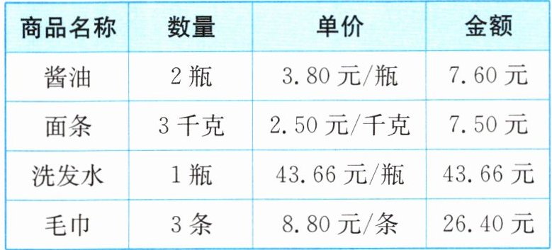 5. 妈妈在超市购买了下面的物品,你能用计算器算出妈妈一共花了多少元吗?