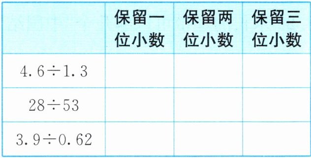 (2) 求商的近似值,一般先算出比需要保留的小数多$1$位的商,再按照四舍五入法写出结果。 (