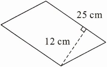 7. 一个平行四边形相邻的两条边的长度分别为 12 厘米和 8 厘米,这个平行四边形的一条高是 9 厘米,这个平行四边形的面积是多少平方厘米?