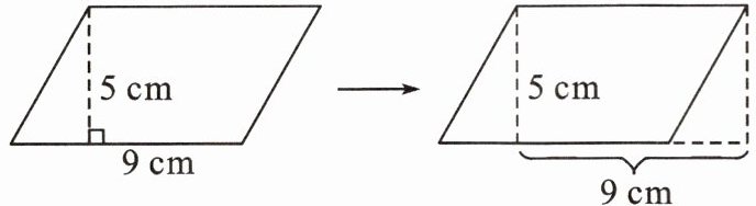 )。如果用 $ S $ 表示平行四边形的面积,用 $ a $ 和 $ h $ 分别表示平行四边形的底和高,那么平行四边形的面积公式可以写成 $ S = $a×h