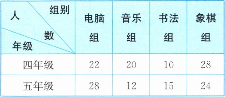 某小学四、五年级参加兴趣小组人数统计表