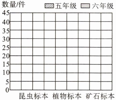 1. 关可调查了科力小学五、六年级同学制作标本情况,根据记录的数据,完成统计图,并回答问题。