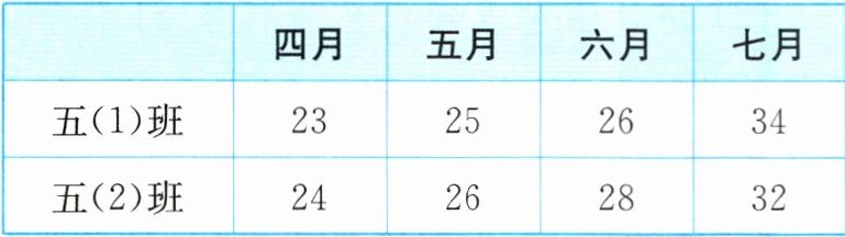 这是绘制复式统计图,每个月要绘制两个班回收易拉罐的数量,所以要用不同的条形来表示五(1)班和五(2)班。五(1)班用■,五(2)班用▓,两种条形相邻,但月与月之间要相隔一个空进行区分。每格表示 2 个数量,表示 23 个时要用半格表示。