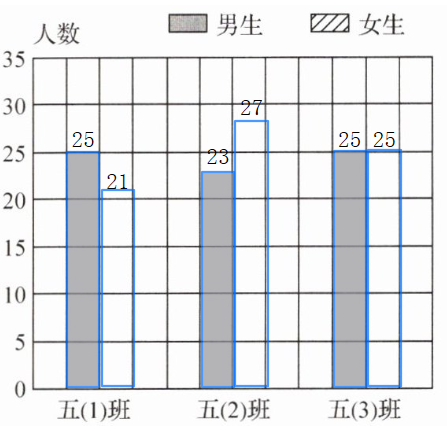 (2) 绘制统计图时,1 格表示 5 个数量,像 21 个要把 1 格平均分成 5 份,画到其中的 1 份。
