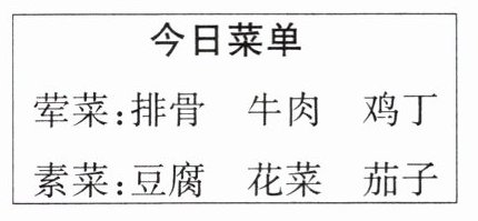 今天一共有多少种配菜方法呢?请列举出来。