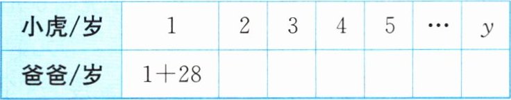 4. 根据“爸爸的年龄比小虎大28岁”,填写下表。