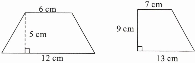 2. (6+12)×5÷2=45(cm²) (7+13)×9÷2=90(cm²)
