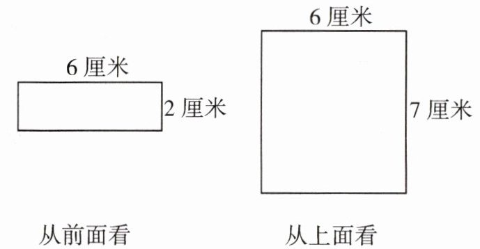 (2) 如图,长方体上、下两个面的面积分别是( )平方厘米和( )平方厘米,前、后两个面的面积分别是( )平方厘米和( )平方厘米,左、右两个面的面积分别是( )平方厘米和( )平方厘米。
