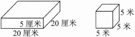 体积:20×20×5=2000(平方厘米) 5×5×5=125(立方米)