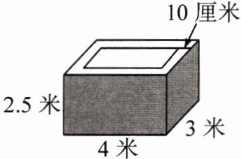 7. 体积:4×3×2.5=30(立方米) 10厘米=0.1米 容积:(4-0.1×2)×(3-0.1×2)×2.5=26.6(立方米)