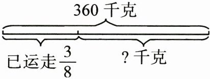 1.$(\frac{1}{3}+\frac{5}{9})×\frac{3}{8}÷2=\frac{1}{6}$(平方厘米) 2.$360×(1-\frac{3}{8})=225$(千克) 3.$27×(1-\frac{1}{3})=18$(人)