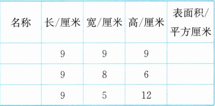 4. 写出表中的物体是正方体还是长方体,再计算表面积。