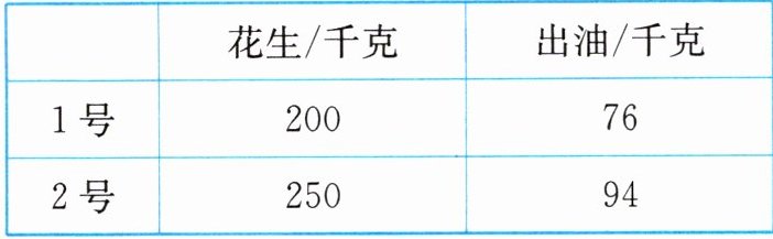 5. 根据下列表格,算一算,1号花生和2号花生谁的出油率更高些?