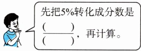 先把5%转化成分数是$\frac{( )}{( )}$,再计算。
