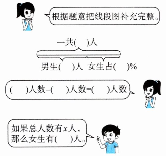 如果总人数有$x$人,那么女生有( )人。