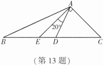 13. (★★) 如图,D是BC上一点,连接AD,AE平分∠BAD交边BC于点E,且AE⊥AC. 若∠DAE = 20°,则∠B + ∠C的度数为
