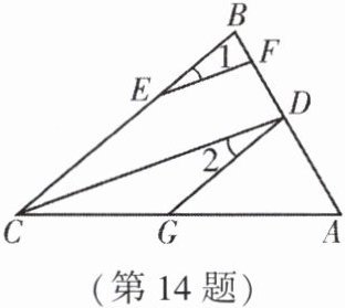 14. (★★) 如图,CD为△ABC的角平分线,点E,F,G分别在△ABC的边BC,AB,AC上,连接EF,DG,EF//CD,∠1 = ∠2.