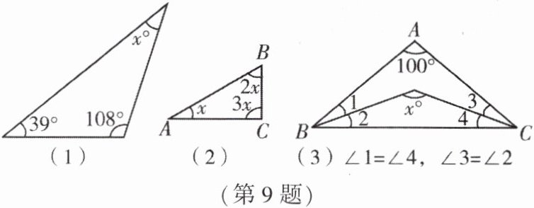 9. (★★) 求出下列各图形中x的值: