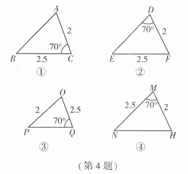 4.(★)根据图中所给定的条件,找出全等的三角形【