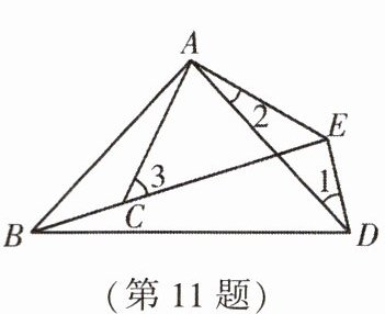 11. (★)如图,点 B,C,E 在同一条直线上,且 AB = AD,AC = AE,BC = DE,若∠1 + ∠2 + ∠3 = 94°,则∠3 的度数为