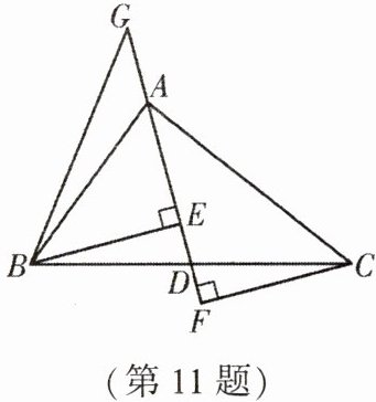 11. (★★)如图,$AD$ 是 $\triangle ABC$ 的中线,$BE \perp AD$ 于点 $E$,$CF \perp AD$,交 $AD$ 的延长线于点 $F$,$G$ 是 $DA$ 延长线上一点,连接 $BG$.