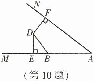 10. (★★)如图,$D$ 是 $\angle MAN$ 内部一点,$DE \perp AM$ 于点 $E$,$DF \perp AN$ 于点 $F$,且 $DE = DF$,$B$ 是射线 $AM$ 上一点,$AB = 6, BE = 2$,在射线 $AN$ 上取一点 $C$,使得 $DC = DB$,则 $AC$ 的长为