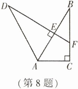 8. (★★)如图,在 $\triangle ABC$ 中,$\angle ACB = 90^{\circ}$,点 $D$ 在 $\triangle ABC$ 外,连接 $AD$,作 $DE \perp AB$ 于点 $E$,交 $BC$ 于点 $F$,$AD = AB$,$AE = AC$.