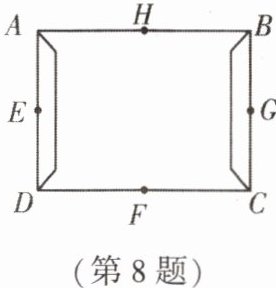 8. (★) 如图,工人师傅做了一个长方形窗框 $ ABCD $,$ E,F,G,H $ 分别是四条边的中点。为了保证在施工过程中窗框不变形,需要在窗框上钉一根木条,这根木条不应钉在 【