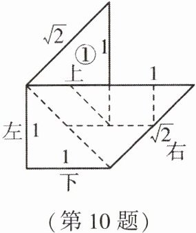 10. (★★)如图所示是用七巧板拼接成的一个轴对称图形(忽略拼接线),小亮改变①的位置,将①分别摆放在图中左、下、右的位置(摆放时无缝隙不重叠),能拼接成不同轴对称图形的个数为【