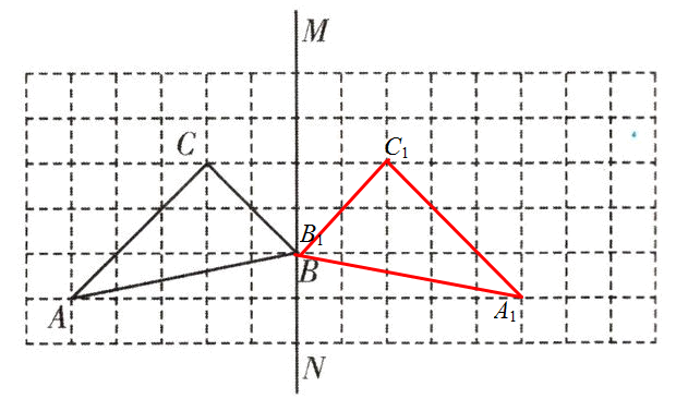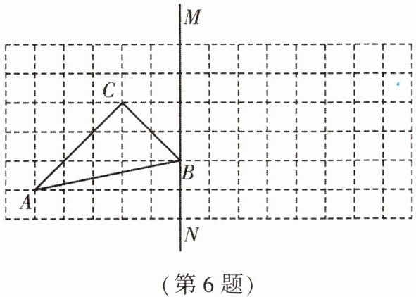 6. (★)如图,方格图中每个小正方形的边长为 1,点 A,B,C 都是格点. 画出△ABC 关于直线 MN 对称的$△A_1B_1C_1.$
