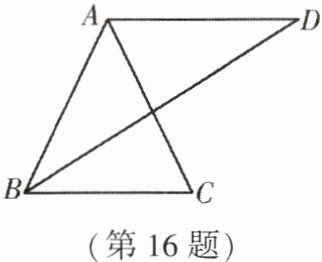 16. 如图,已知 $ AB = AC = AD $,且 $ AD // BC $。求证:$ \angle C = 2 \angle D $。