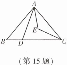 15. 如图,在 $ \triangle ABC $ 中,$ AB = AC $,$ \angle BAC = 80° $,$ D $ 是边 $ BC $ 上一点(不与点 $ B $,$ C $ 重合),$ \angle DAC $ 和 $ \angle BCA $ 的平分线交于点 $ E $。