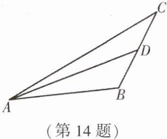 14. (★★) 如图,在 $ \triangle ABC $ 中 ($ AC > AB $),$ AC = 2BC $,边 $ BC $ 上的中线 $ AD $ 把 $ \triangle ABC $ 的周长分成 $ 60 cm $ 和 $ 40 cm $ 两部分,求边 $ AC $ 和 $ AB $ 的长。(提示:设 $ CD = x cm $)