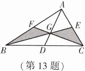 13. (★★) 如图,$ G $ 为 $ \triangle ABC $ 三边中线 $ AD,BE,CF $ 的交点,$ S_{\triangle ABC} = 12 cm^2 $,则阴影部分的面积为 【