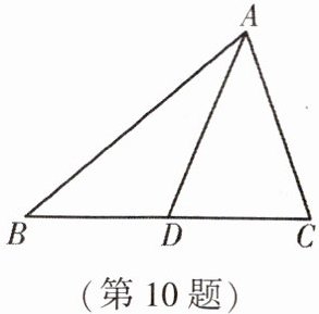 10. (★★) 如图,在 $ \triangle ABC $ 中,$ AD $ 是边 $ BC $ 上的中线,$ \triangle ABD $ 的周长比 $ \triangle ADC $ 的周长多 2,且 $ AB $ 与 $ AC $ 的长的和为 10。