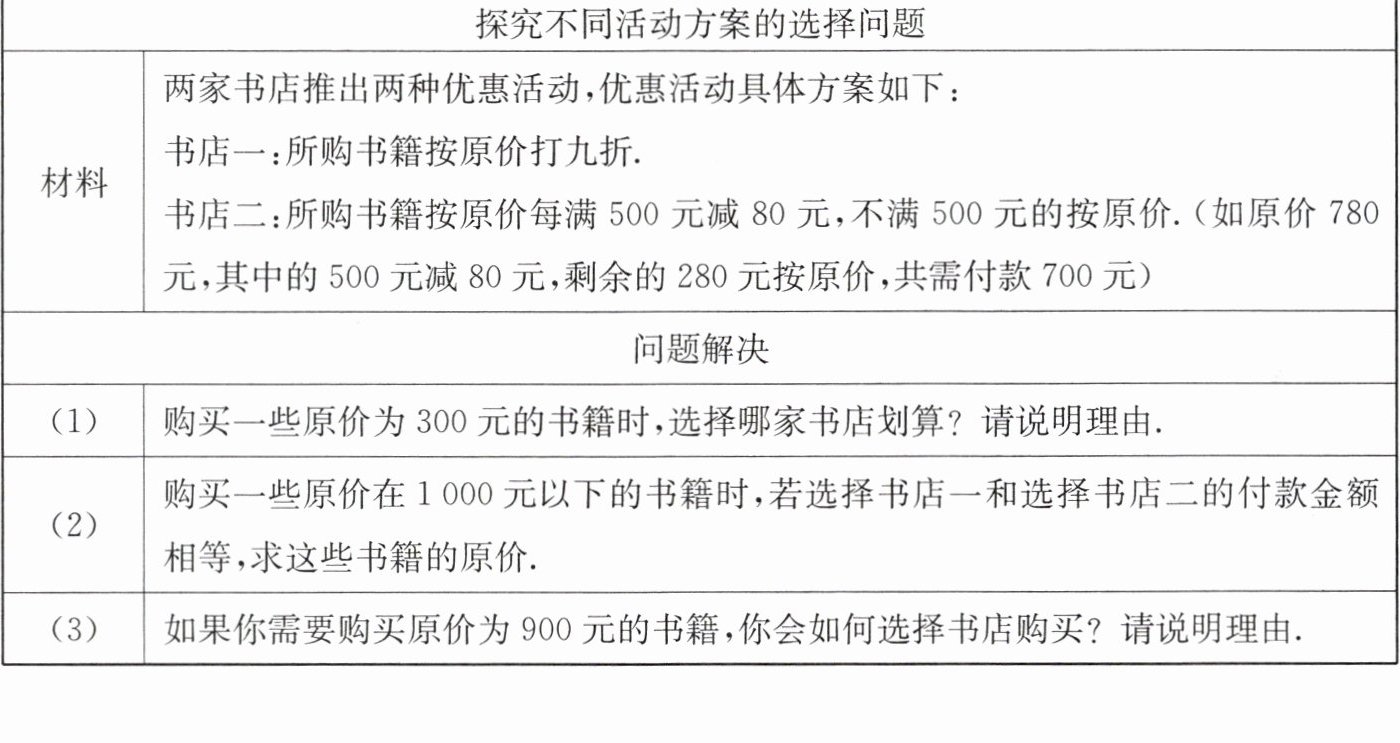 (3)先在书店二购买500块钱的书,再去书店一购买400块钱的书,理由如下: