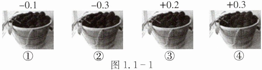 9. 如图1.1-1,对4筐杨梅称重,每筐杨梅以4千克为基准,超过的千克数记为正数,不足的千克数记为负数.那么这4筐杨梅中,哪筐杨梅最重?哪筐杨梅最轻?